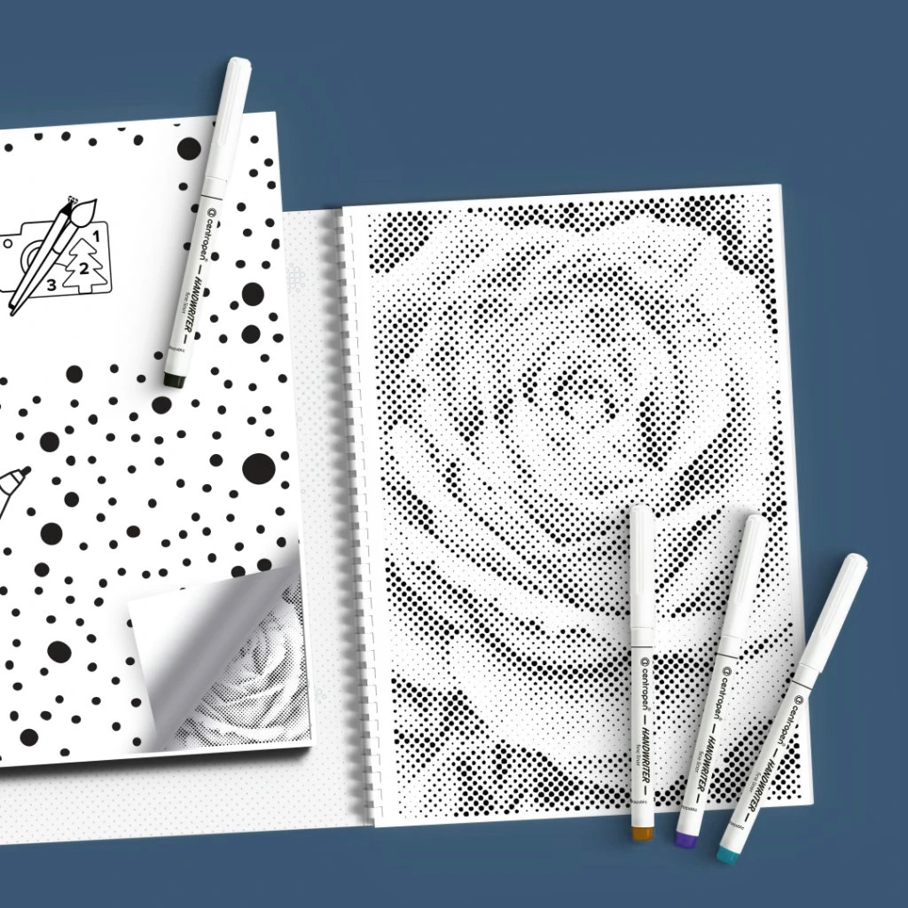 Den sjove mal-med-prikker teknik skaber et flot ensfarvet motiv. Alle cirkler til et motiv udfyldes i samme farve.
