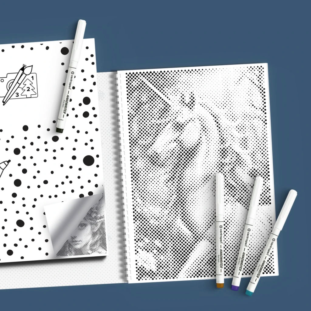 Den sjove mal-med-prikker teknik skaber et flot ensfarvet motiv. Alle cirkler til et motiv udfyldes i samme farve.