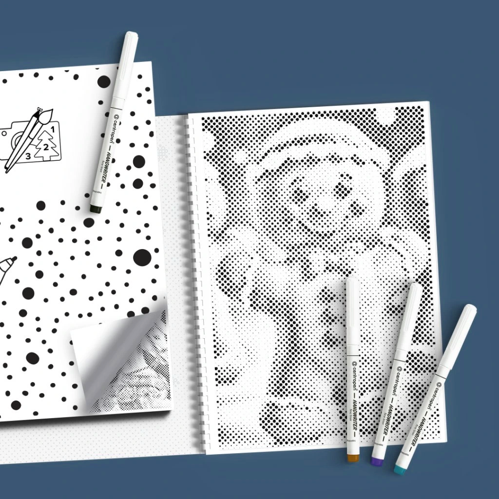 Den sjove mal-med-prikker teknik skaber et flot ensfarvet motiv. Alle cirkler til et motiv udfyldes i samme farve.