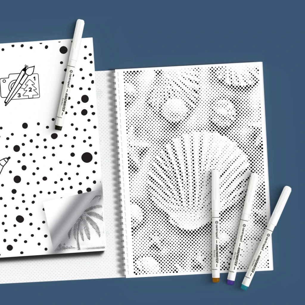 Den sjove mal-med-prikker teknik skaber et flot ensfarvet motiv. Alle cirkler til et motiv udfyldes i samme farve.